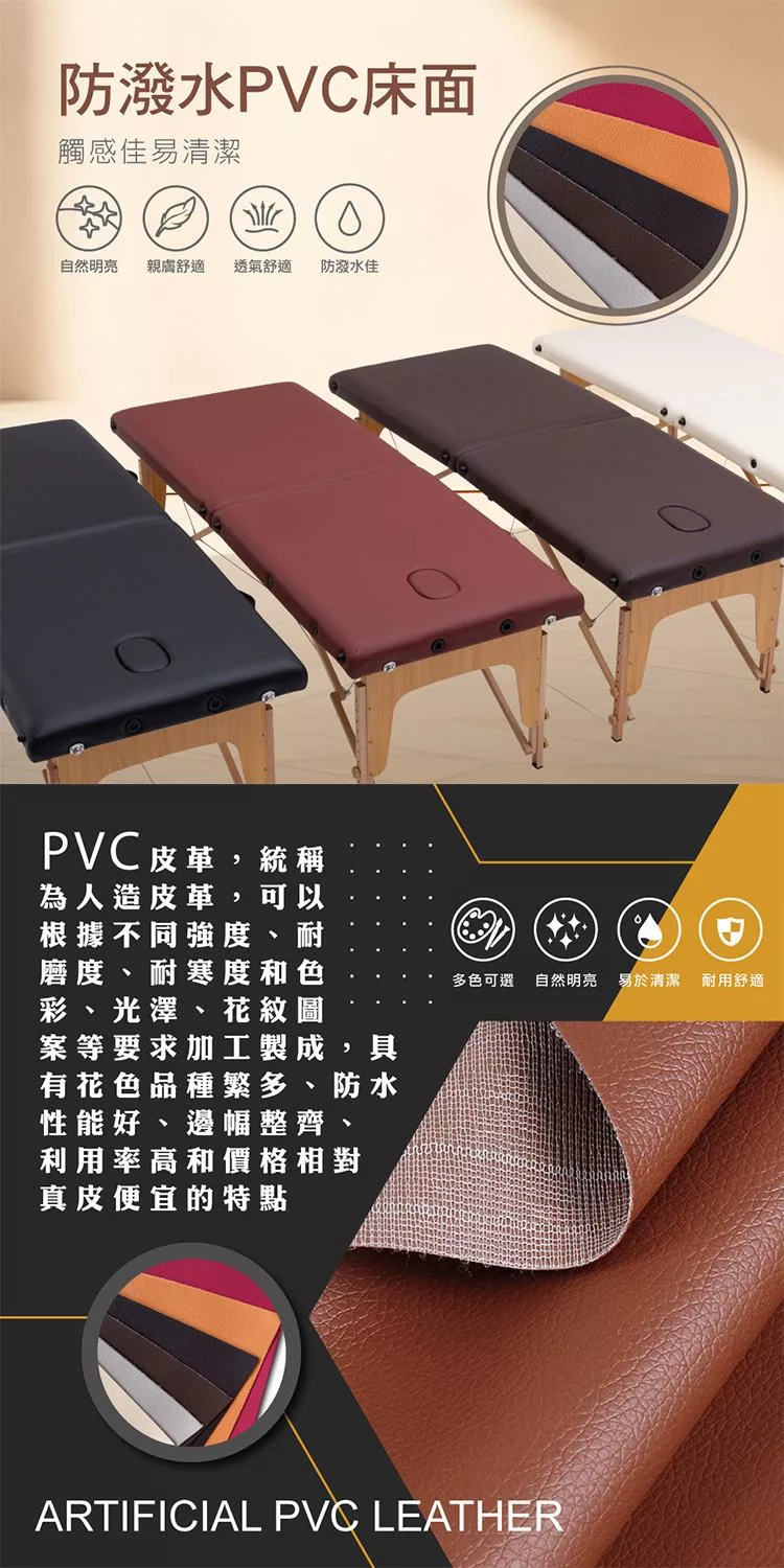 * 防潑水PVC床面,觸感佳易清潔