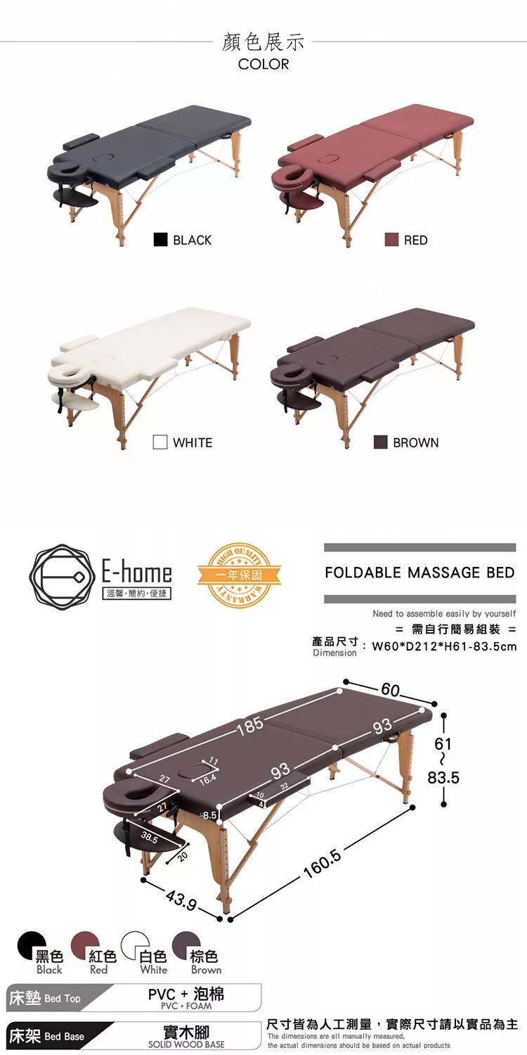 正常使用下,結構保固一年。立即添加到購物車,您將體驗此折疊按摩推拿刺青床的功能性和舒適性!