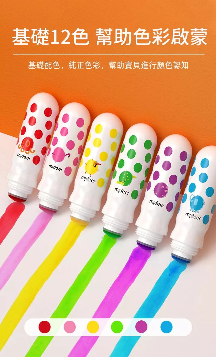 《MiDeer》-- 可洗式速乾絲綢蠟筆(12色) ☆
