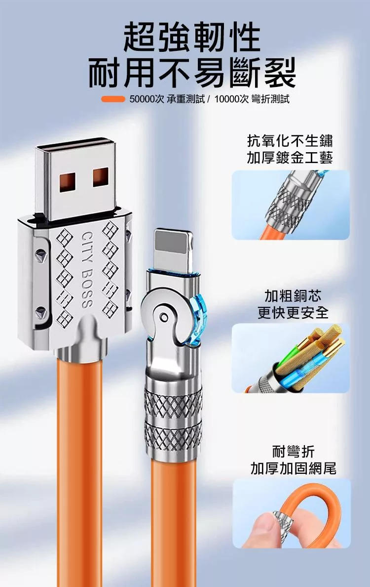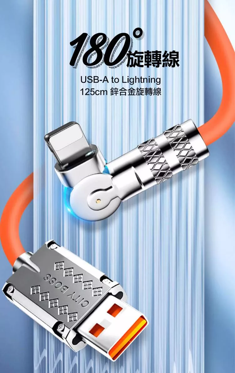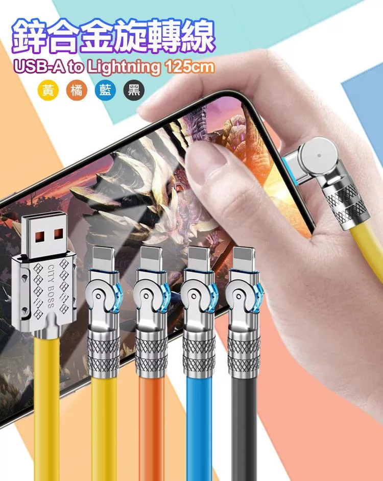 City Boss USB-A to Lightning 鋅合金旋轉充電線125cm