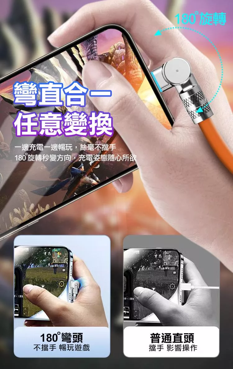可旋轉180度 邊玩邊充 絲毫不擋手