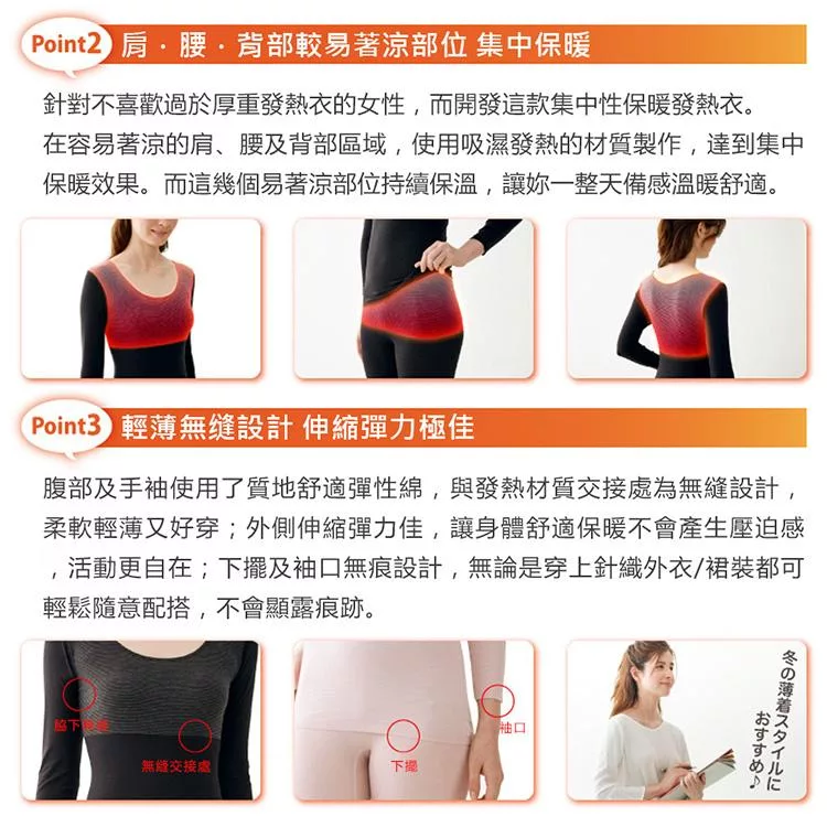 吸濕發熱材質,集中保暖效果佳!