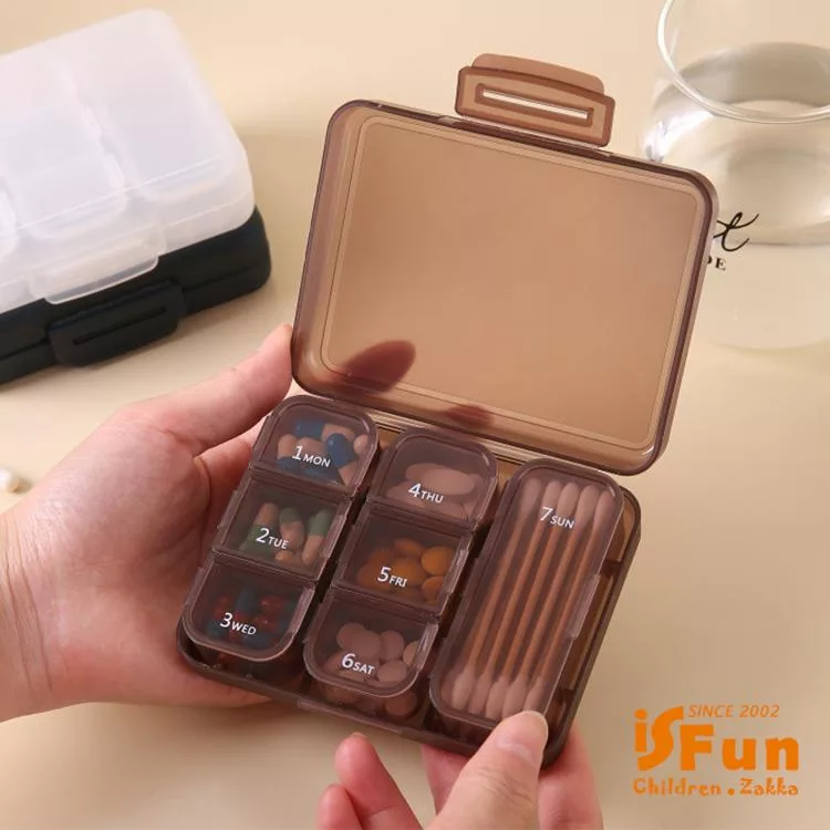 【上手家居】磁吸藥盒(藥盒一週/藥盒分裝盒/小藥盒/防潮藥盒/分藥盒) 透明彩蓋