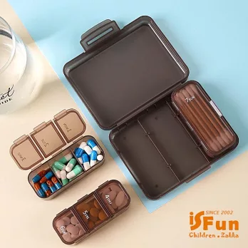 【上手家居】二合一取藥器藥盒(隨身藥盒/小藥盒/分藥盒/藥品收納盒) 杏色2入組