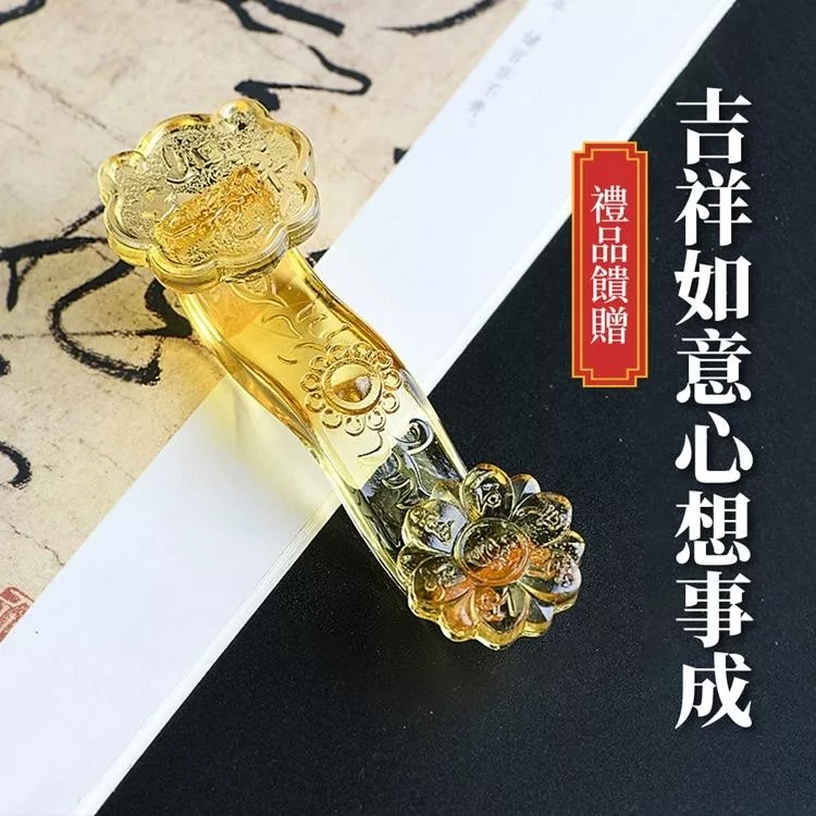 吉祥如意琉璃玉招財如意擺件 黃色琉璃