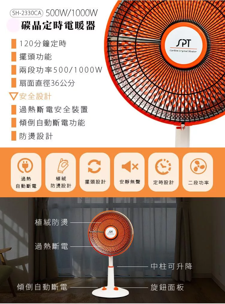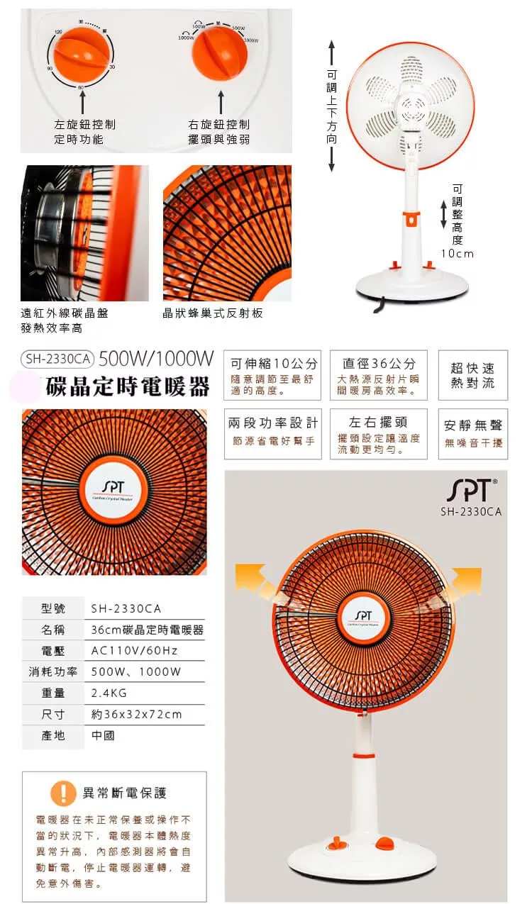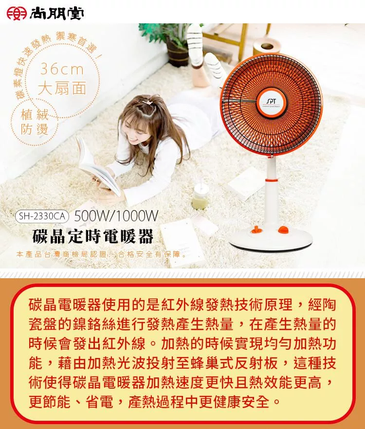 尚朋堂 碳晶電暖器SH-2336CA(40CM大扇面)(福利品)