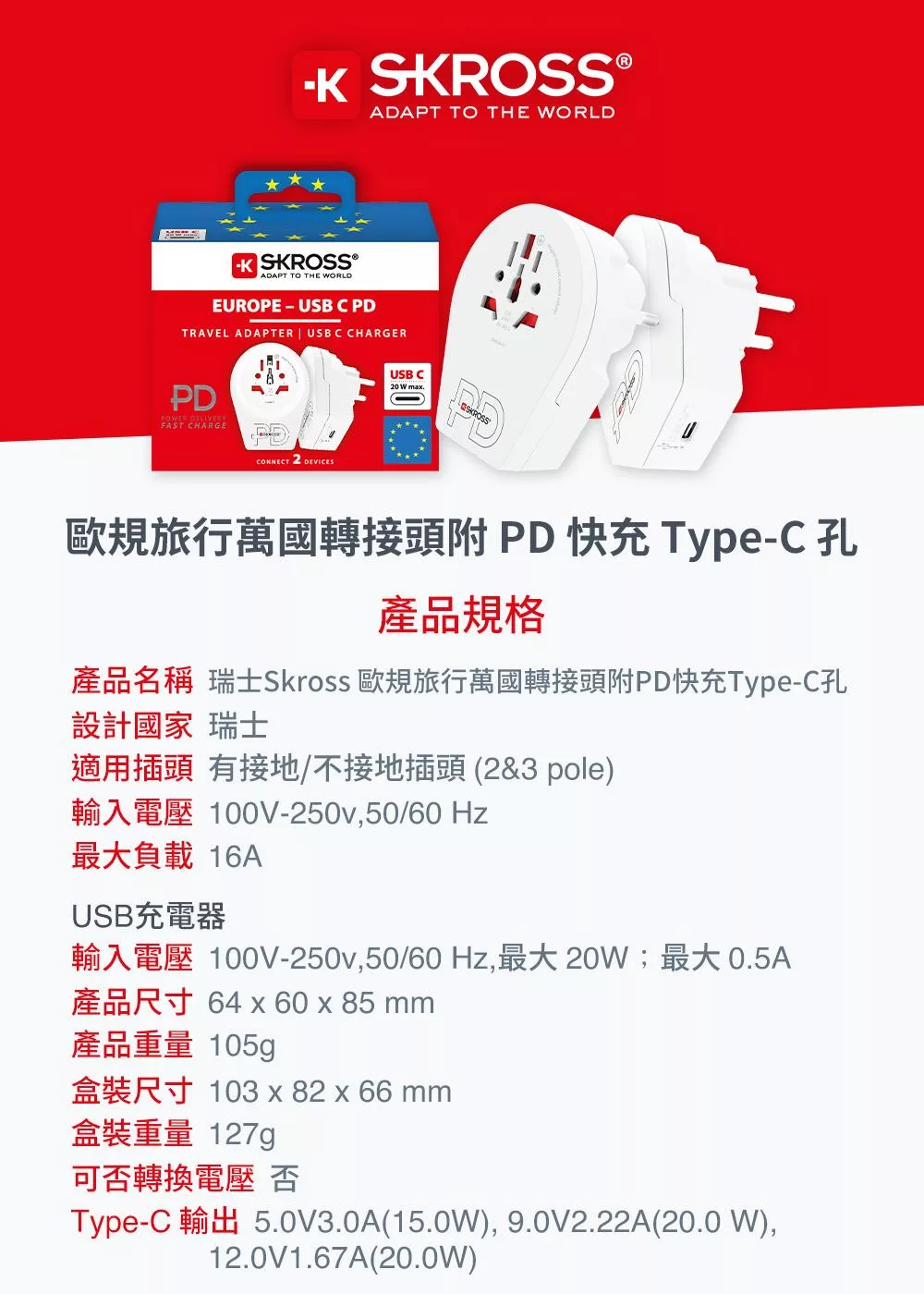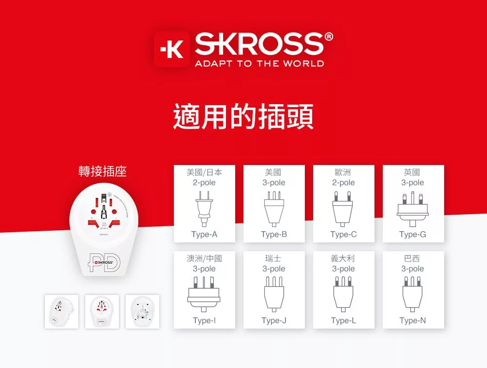 瑞士Skross 澳規/中國八字旅行萬國轉接頭