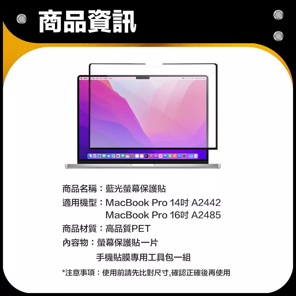 防摔專家 Macbook Pro 16吋 A2485 藍光螢幕保護貼