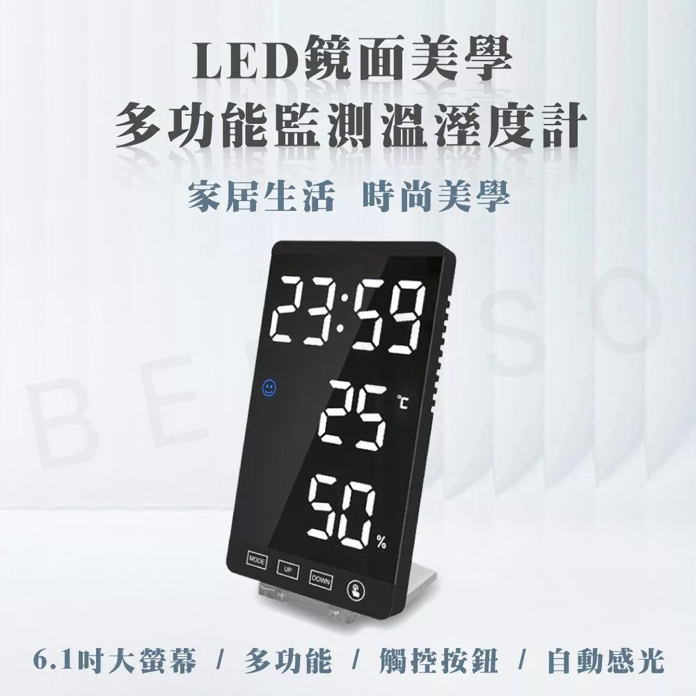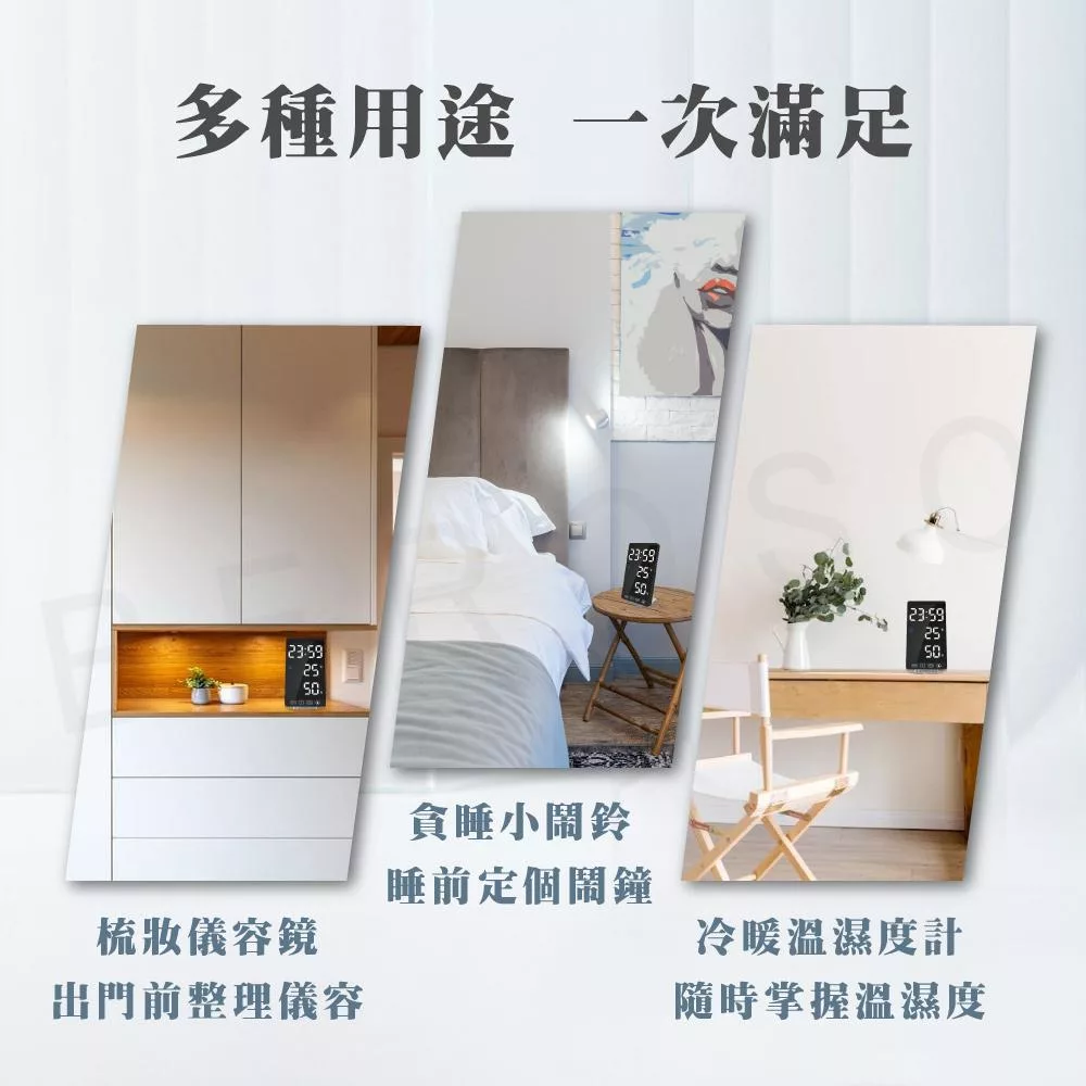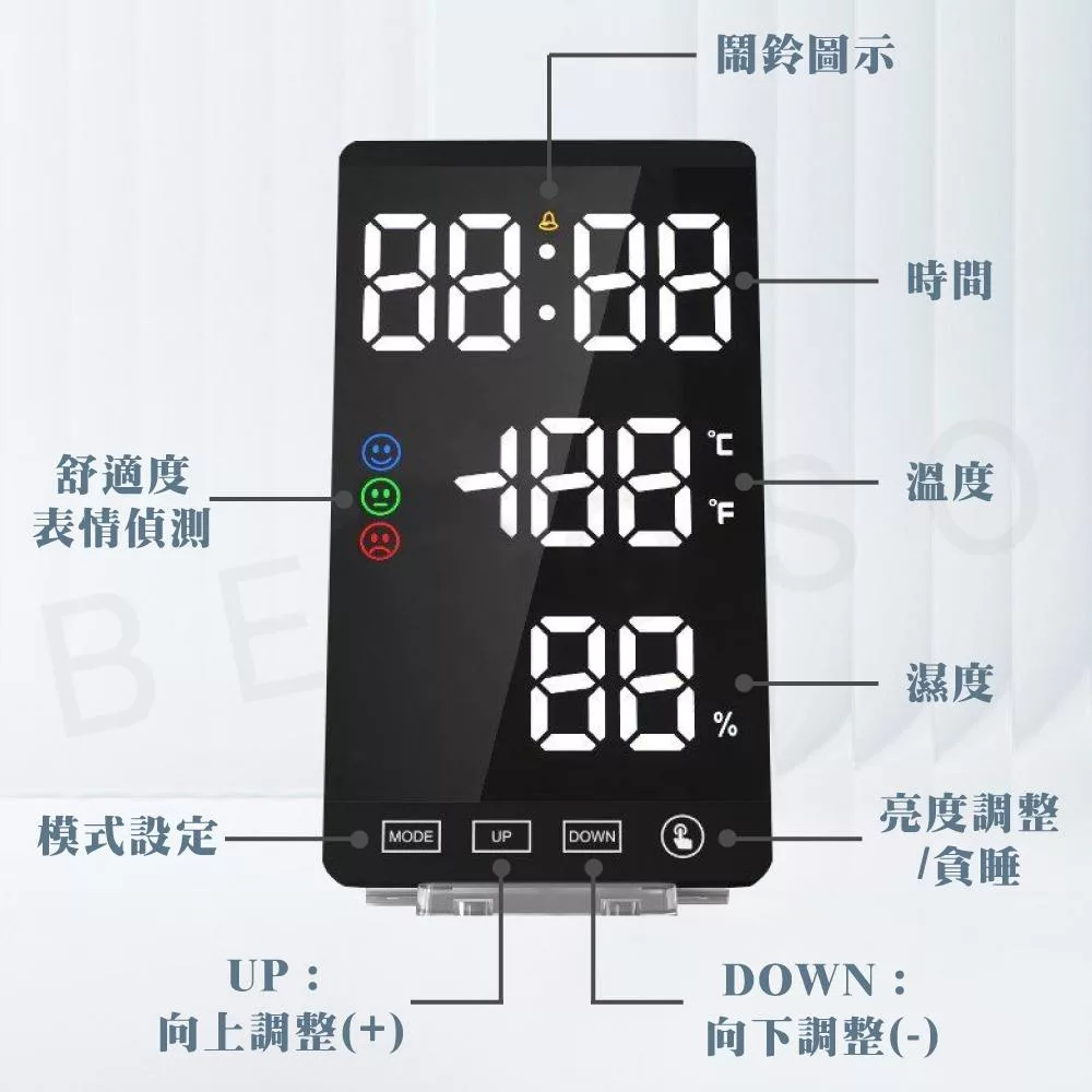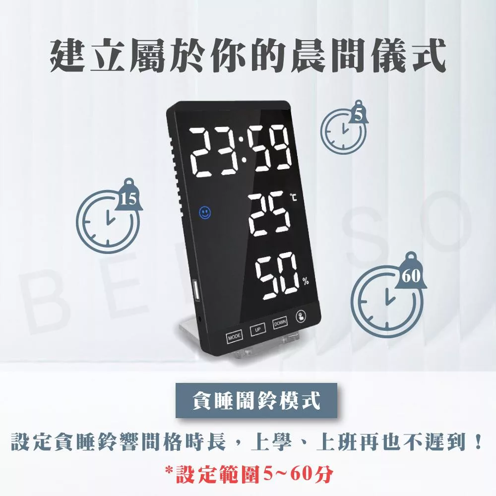 Beroso 倍麗森 日式馬卡龍透明溫濕度計 室內溫度計 電子鬧鐘 夜光鬧鐘 靜音鬧鐘 白色