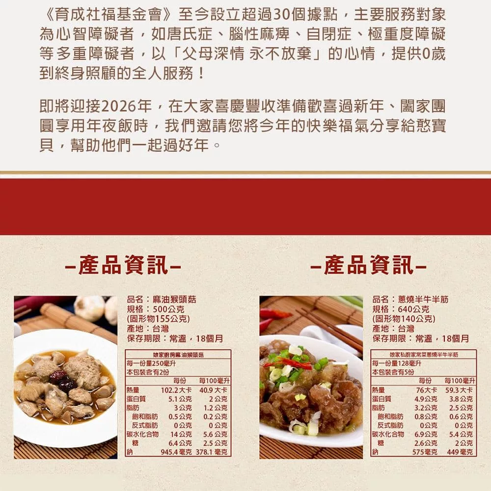 《育成基金會x娘家廚房》老憨兒圍爐計畫-公益愛心年菜募集(購買者不會收到商品)
