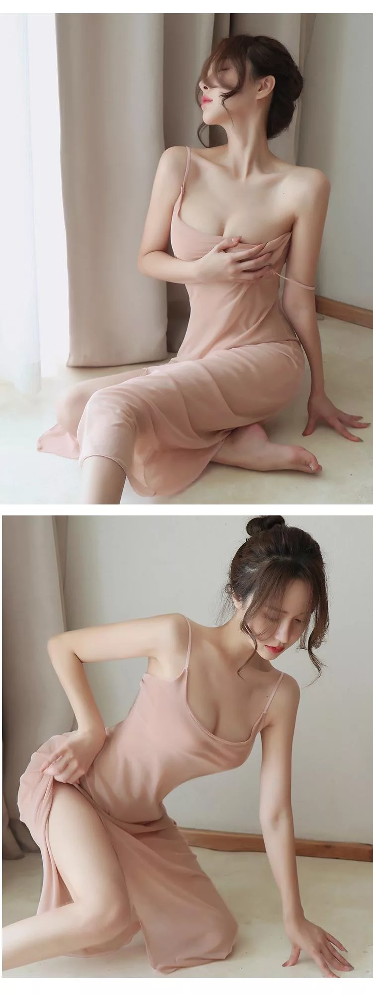 【唯蜜色】性感吊帶絲滑親膚睡裙/居家/睡衣/睡裙#K22 F 豆沙色