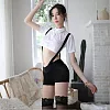 【唯蜜色】性感秘書包臀吊帶褲套裝E37白 白色