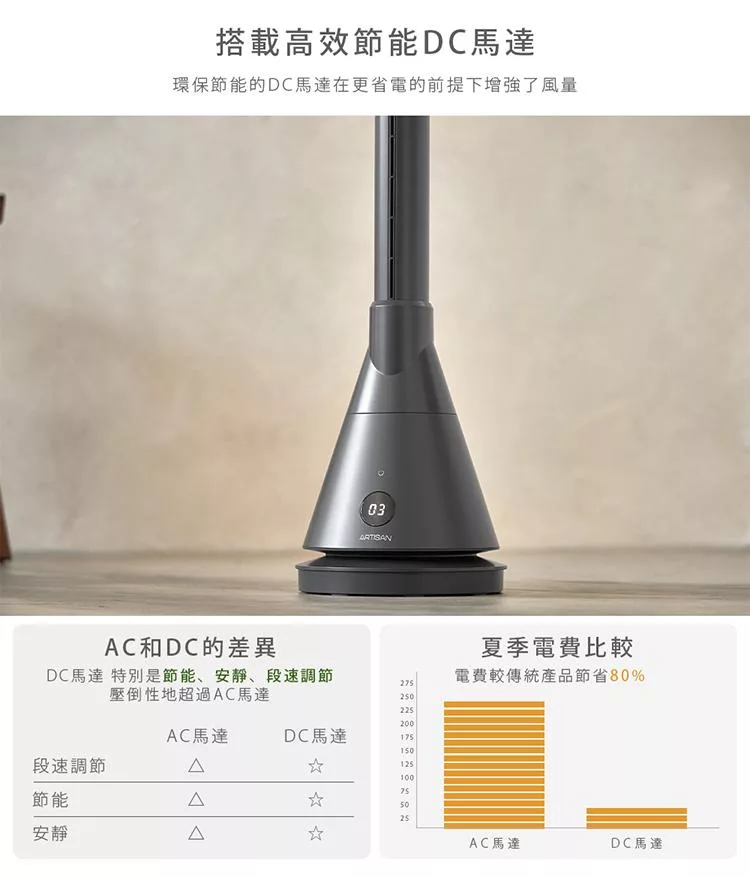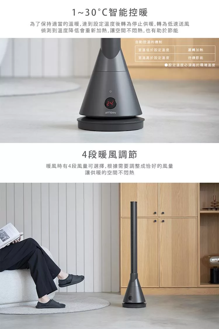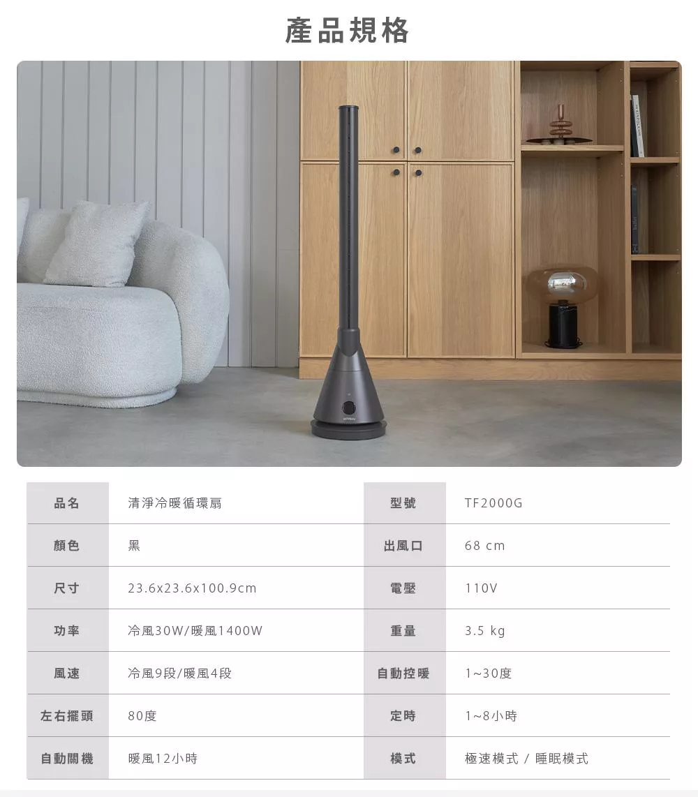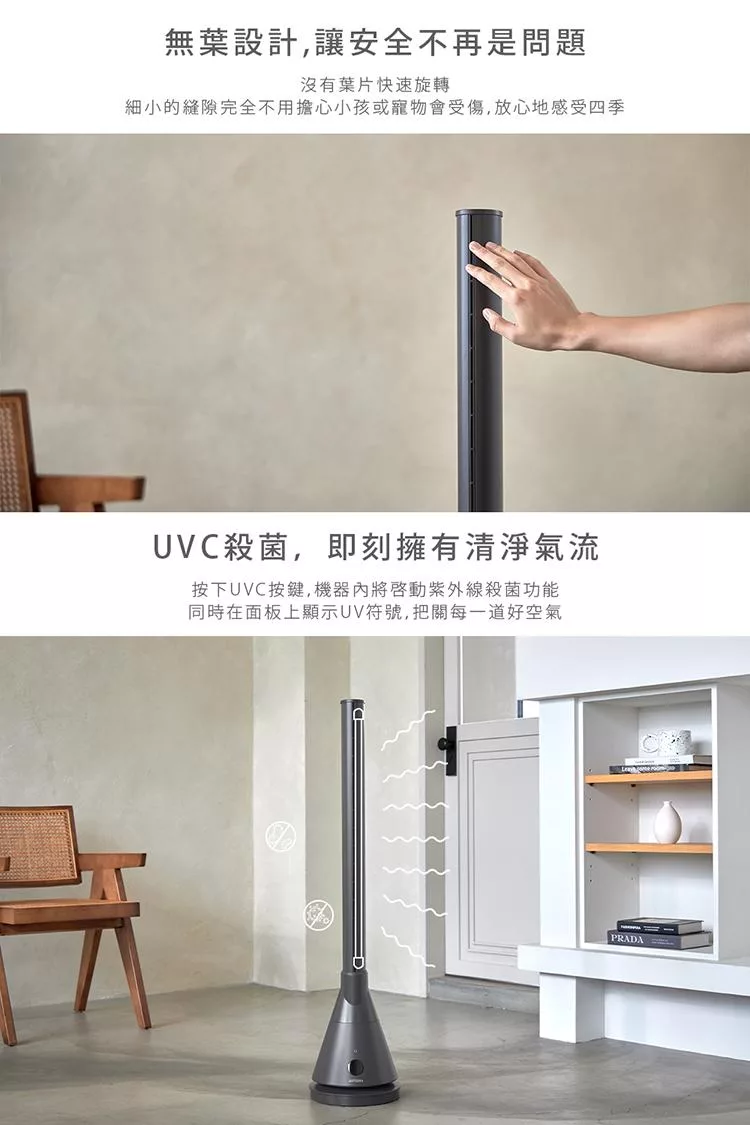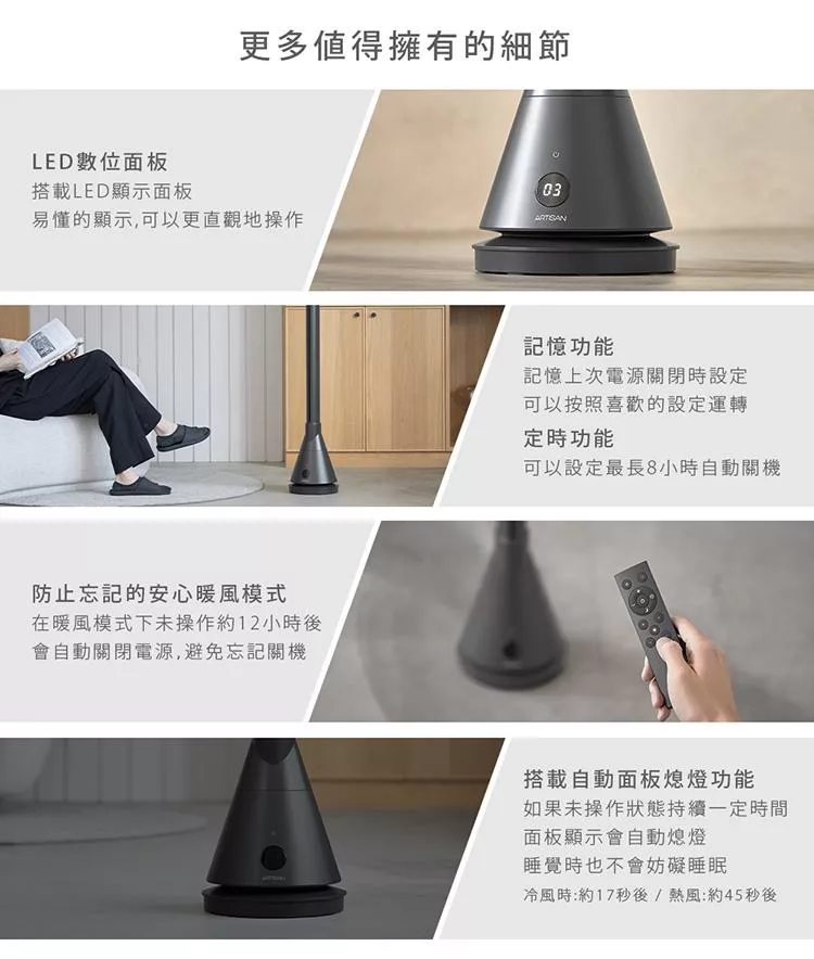 【ARTISAN奧堤森】UVC殺菌冷暖循環扇(灰)TF2000G贈隨行果汁機