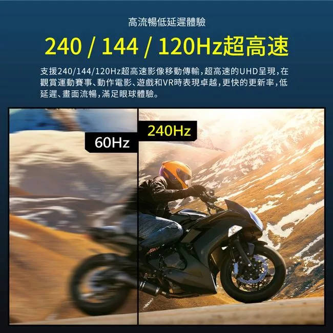 ◎超高流暢支援240Hz / 144 Hz (4K@240Hz max.)