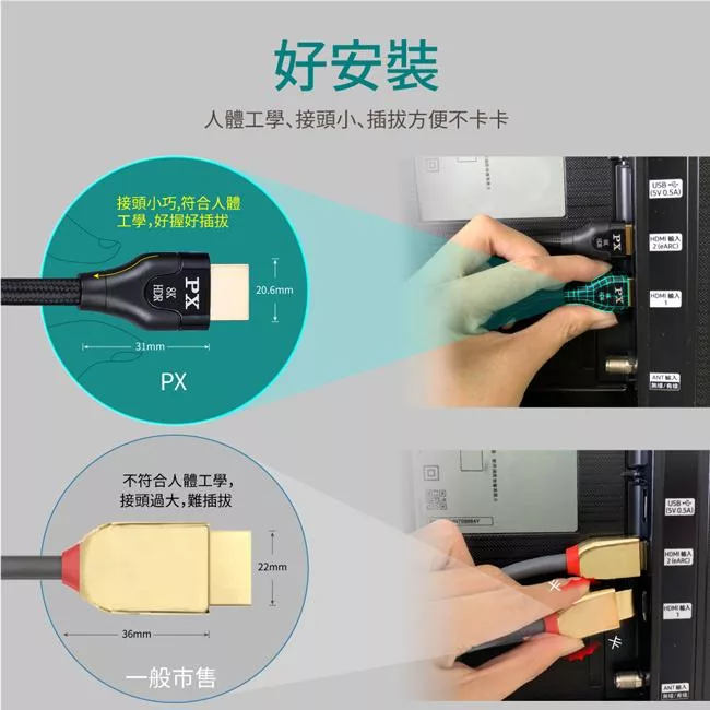 ◎好安裝:接頭小、易插拔,接頭雙色成型模、不易斷頭