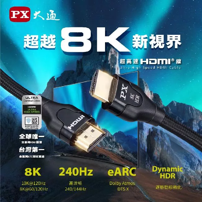 PX大通真8K HDMI協會認證2.1版影音傳輸線(5米) HD2-5XC