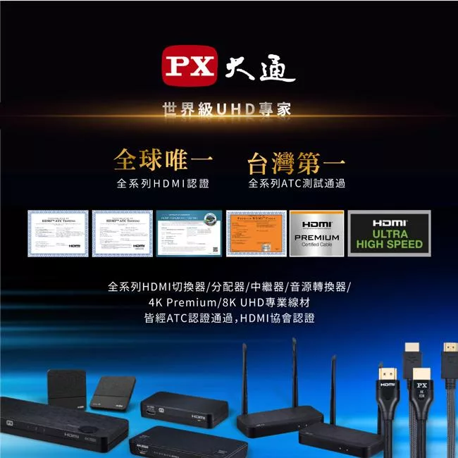 ◎全系列切換器/分配器/中繼器/音源轉換器/4K PREMIUM線/8K UHD線,皆經ATC認證通過,HDMI協會認證