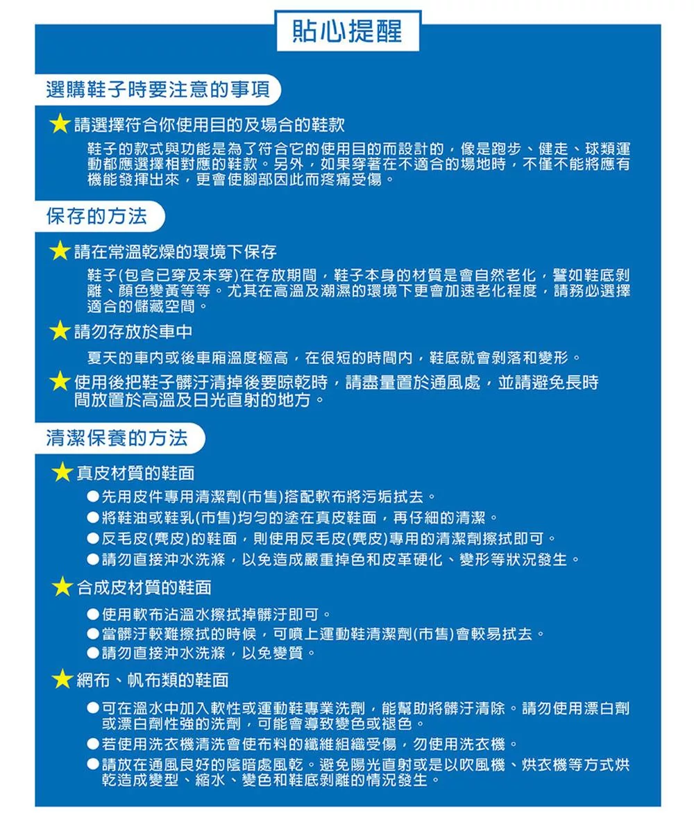 (1)鞋底磨損 (請於室內,軟墊上試穿SIZE)。