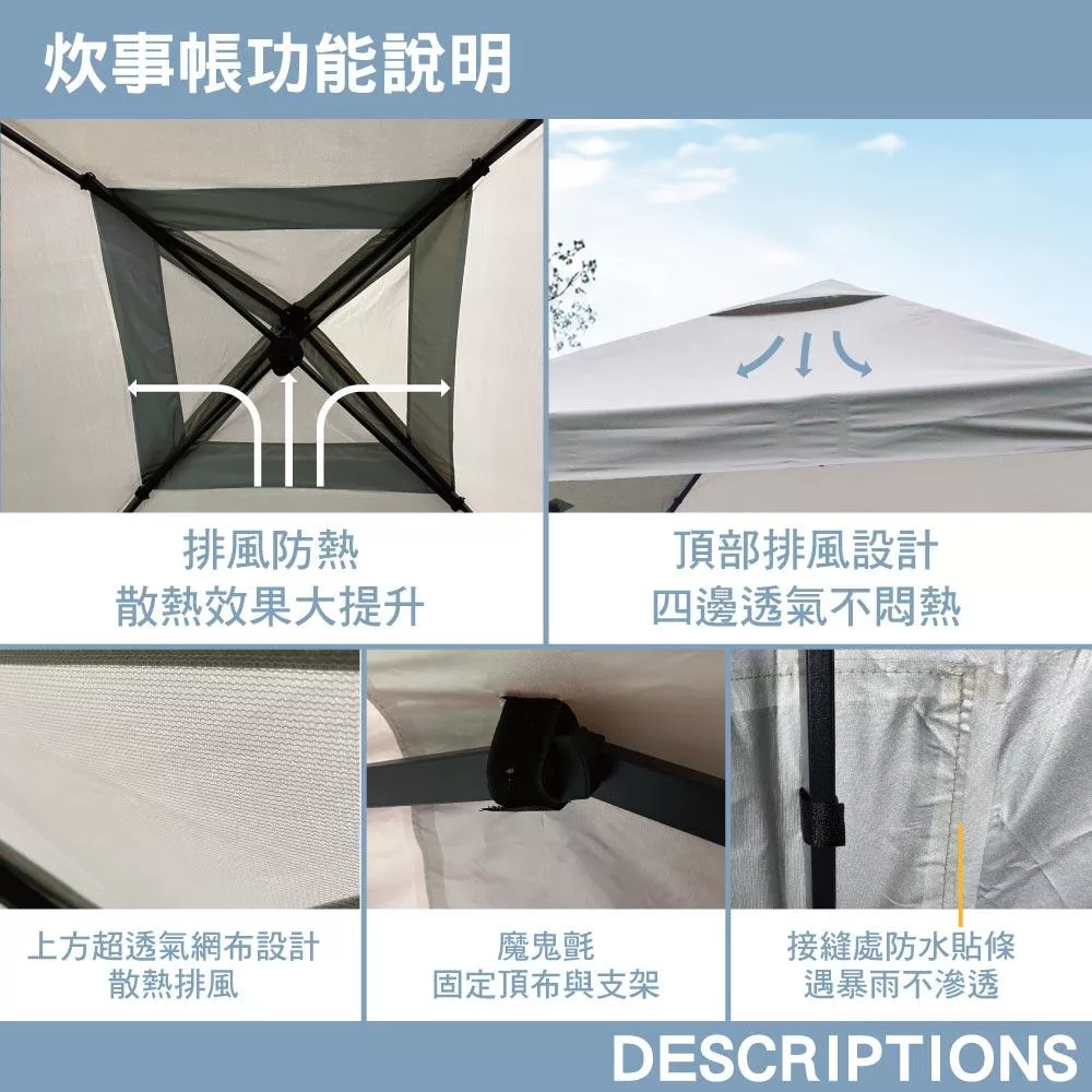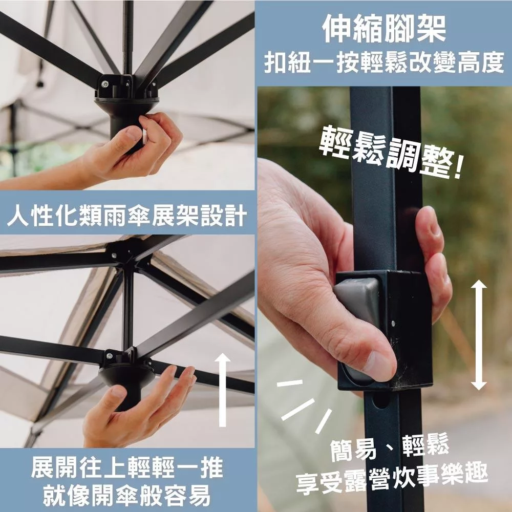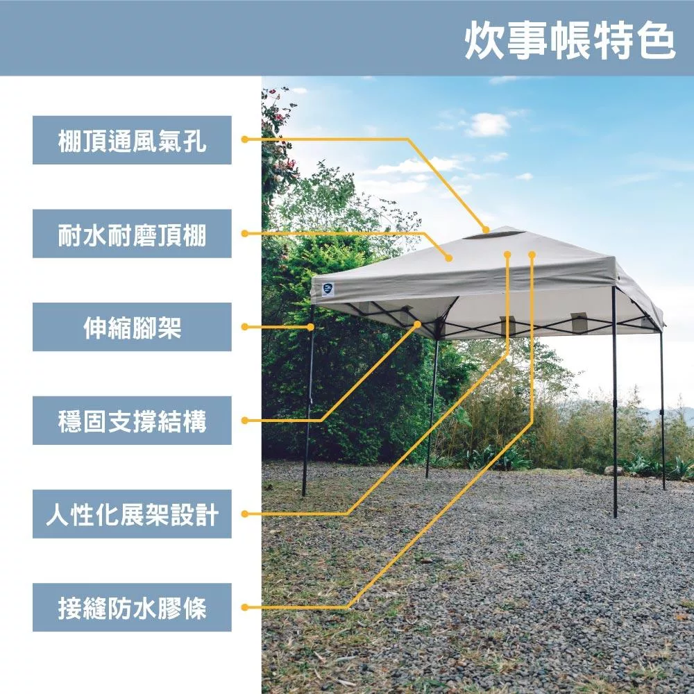 OUTDOORONE 星映速搭客廳帳 一按就開,戶外彈開式中型炊事帳(不含4面圍布)輕鬆撐起你的戶外小天地 三段式高度加大空間設計