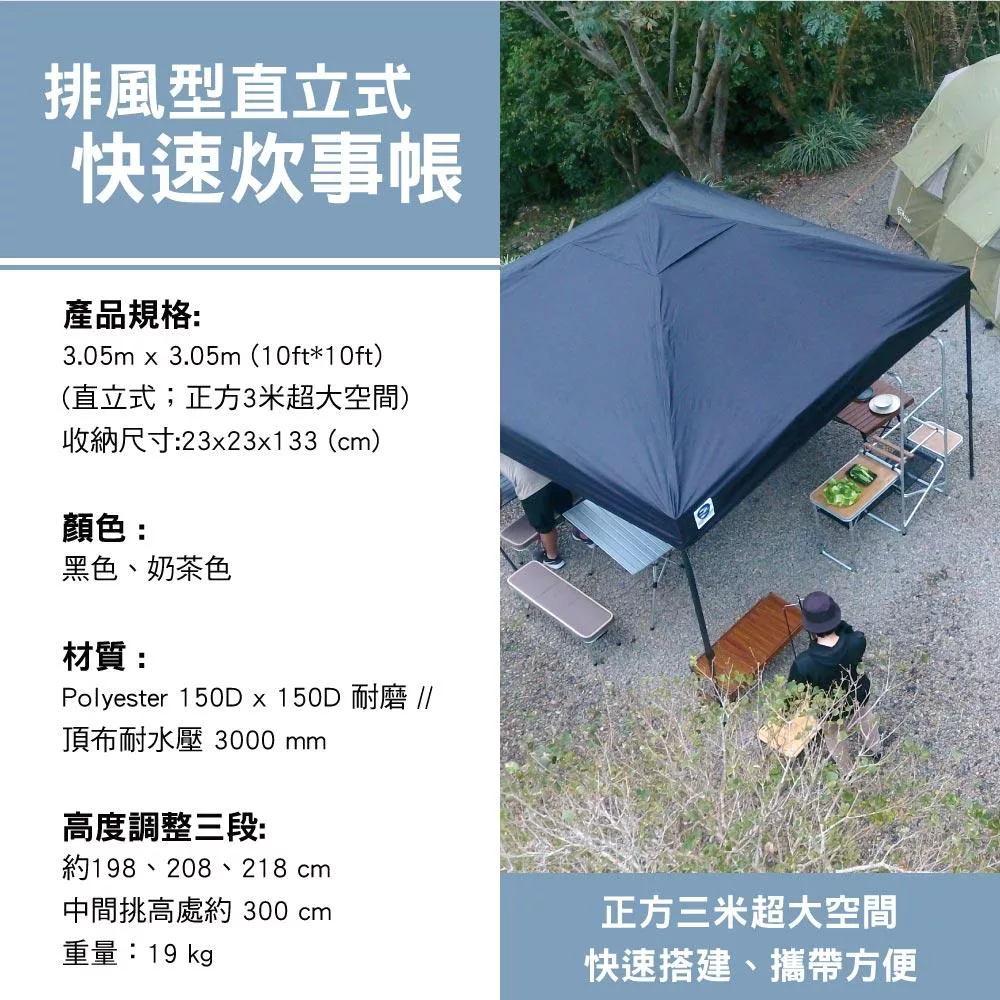 【OUTDOORONE】特大黑膠客廳帳炊事帳露營帳篷戶外防雨裝備野外帳篷 附收納袋 速搭園遊會停車棚 活動帳快速帳 遮陽棚遮雨棚 月沙
