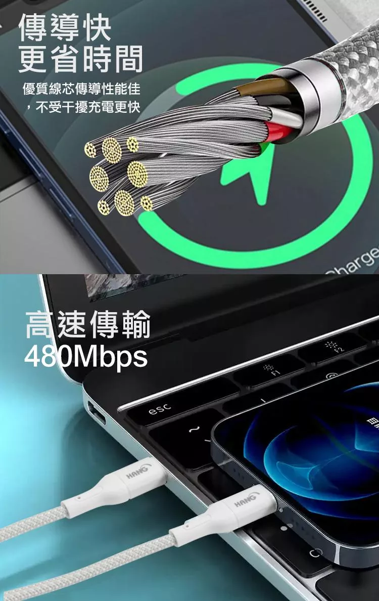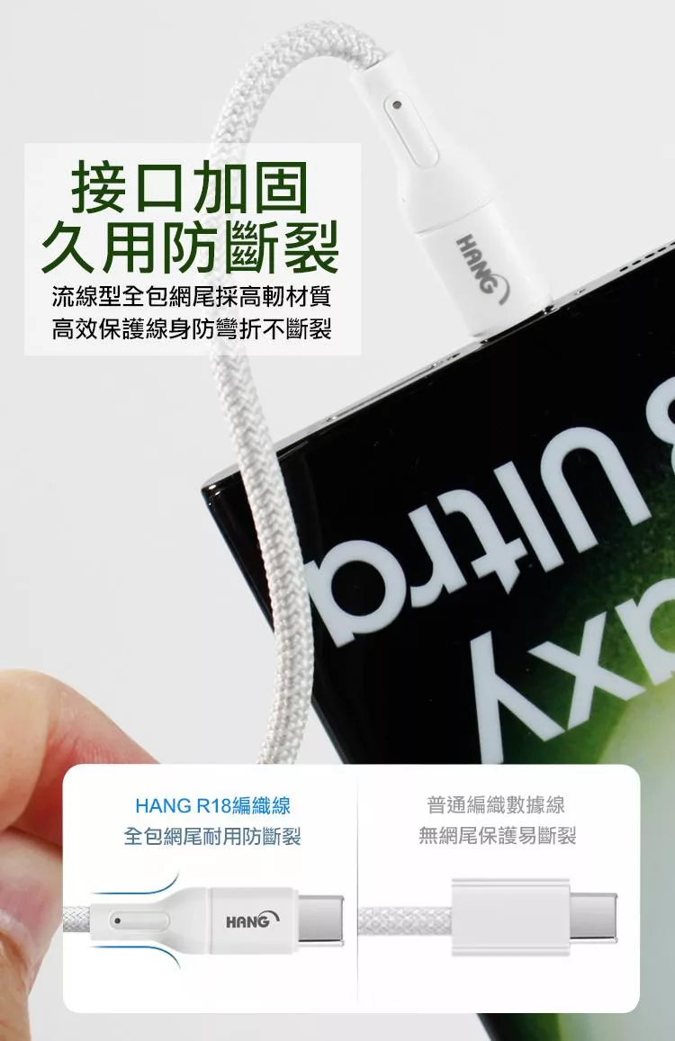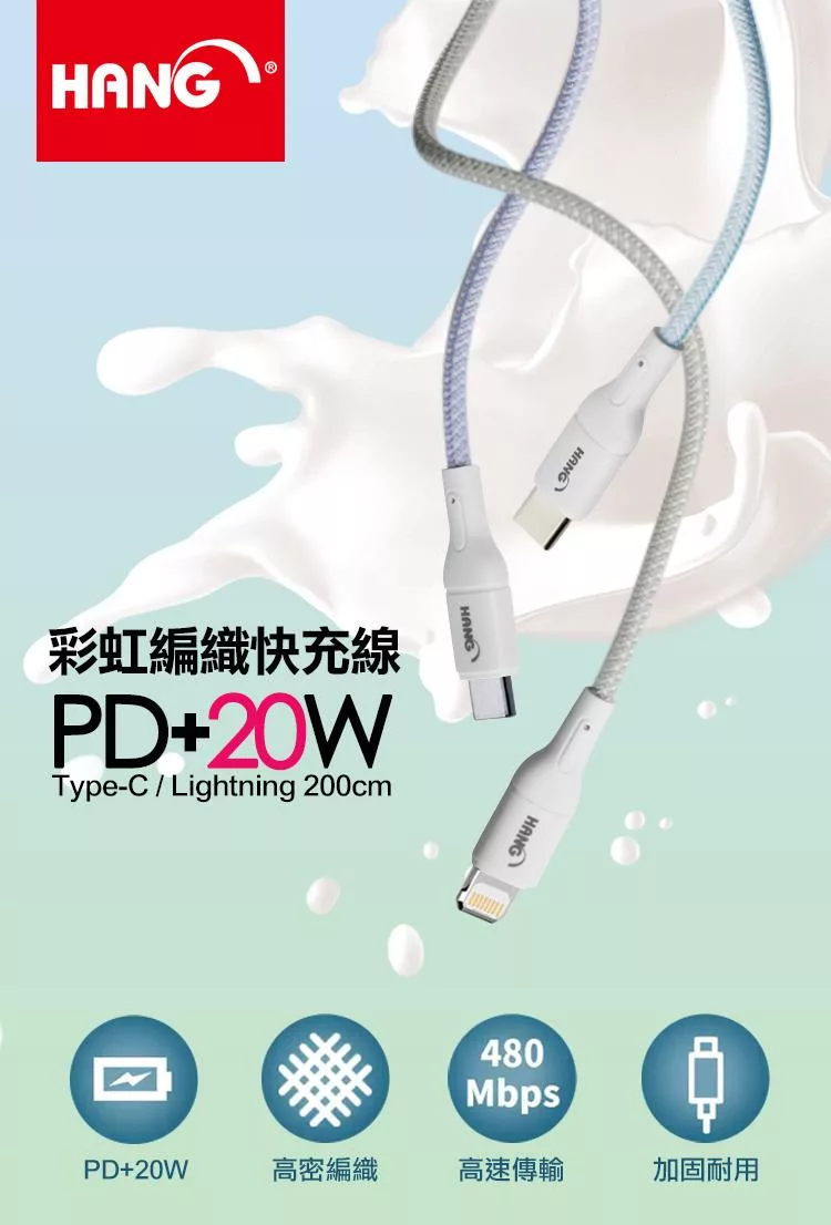 HANG R18 20W高密編織 Type-C to Lightning PD快充充電線200cm