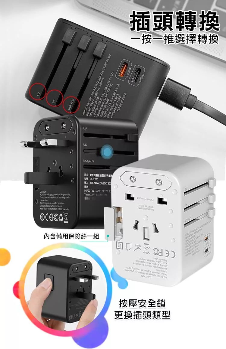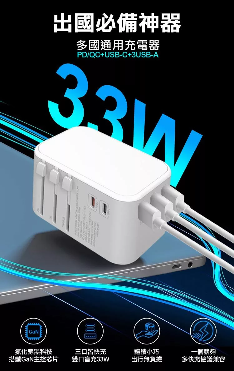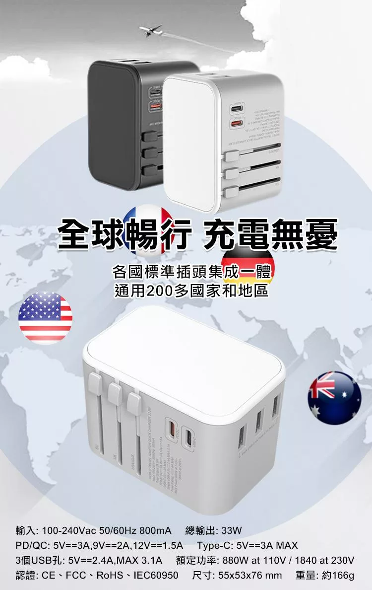 CITY 多國轉換33W 旅行充電器 PD/Type-c/USB-A 萬用旅充頭 多孔快充頭