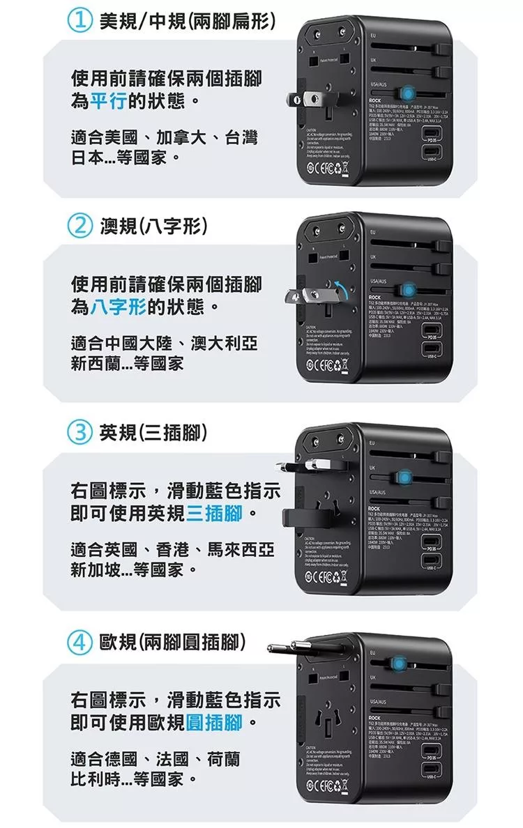 POLYBATT 35W氮化鎵GaN 出國旅遊轉接頭(歐規/英規/澳規) 黑色