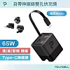 POLYWELL 65W自帶線快充頭 USB-A+C雙孔 Type-C伸縮線 氮化鎵 /附多國轉接頭