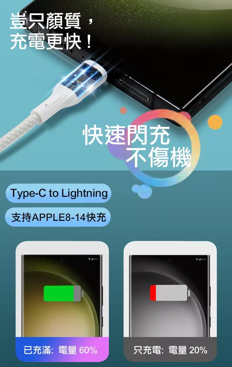 +高密編織線Type-C to Lightning iphone/ipad充電線-200cm