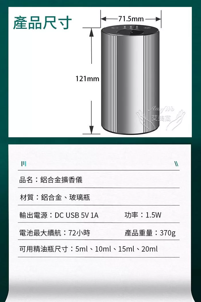 *擴香儀為電子產品,勿將商品浸泡於水中或於水龍頭下清洗!