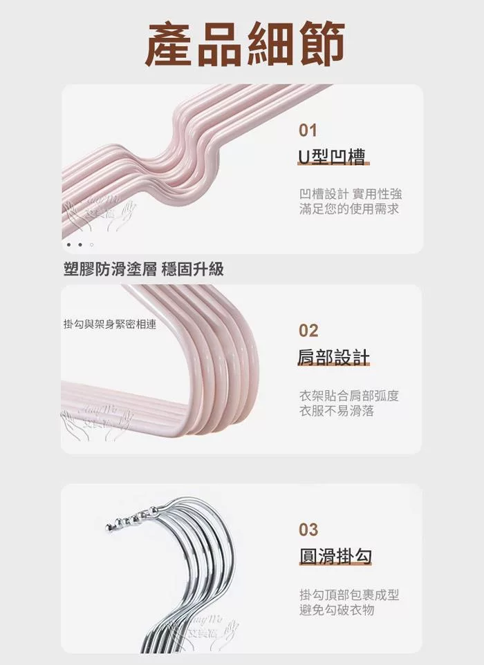 【Ma-Club】輕便彎曲無痕圓弧衣架 * 粉紅色 10支一組
