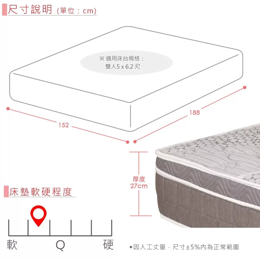 Homelike 喜家居海藻紗硬式獨立筒床墊-雙人5尺(2534)