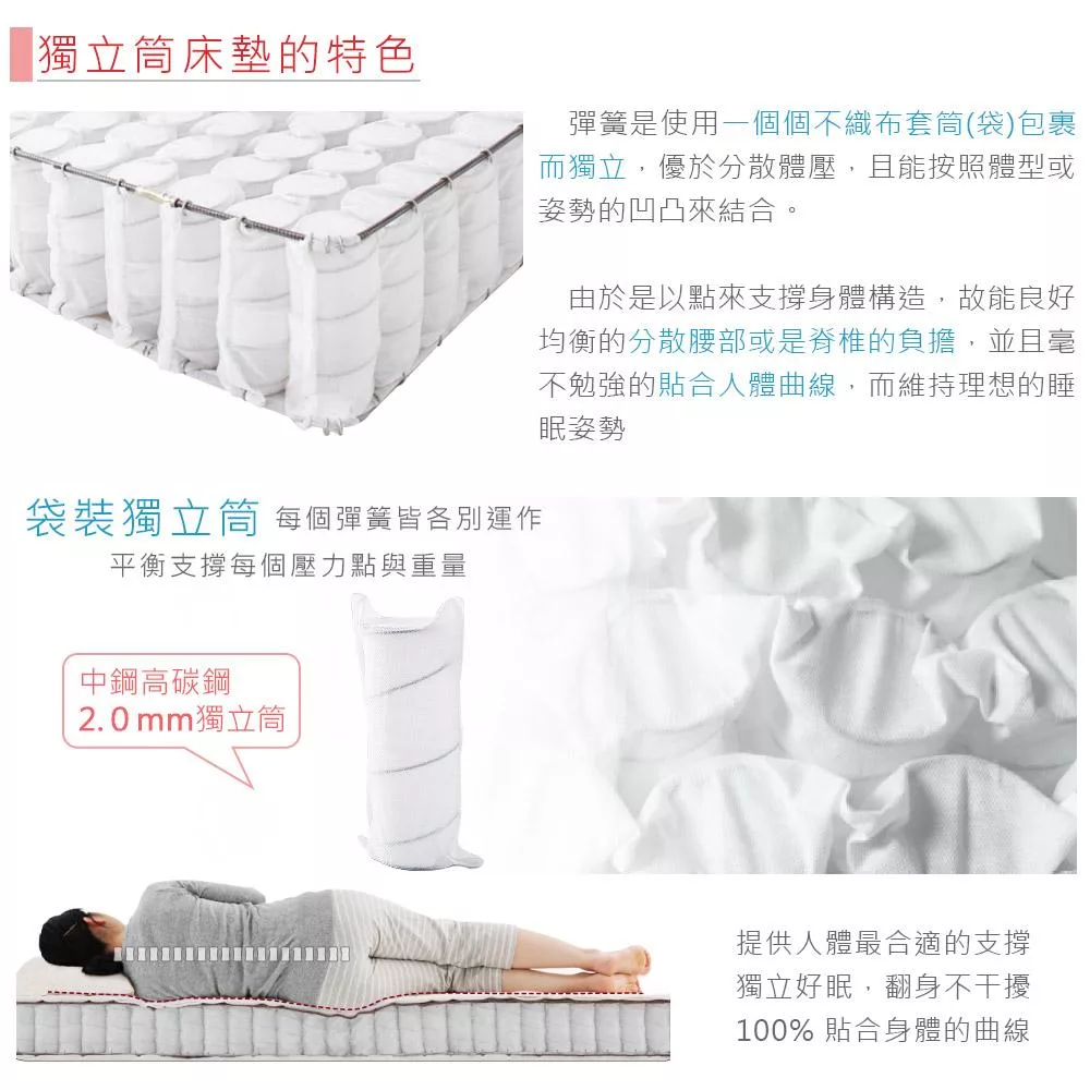 Homelike 喜家居銀離子蝶型護框獨立筒床墊-雙人5尺(2537)