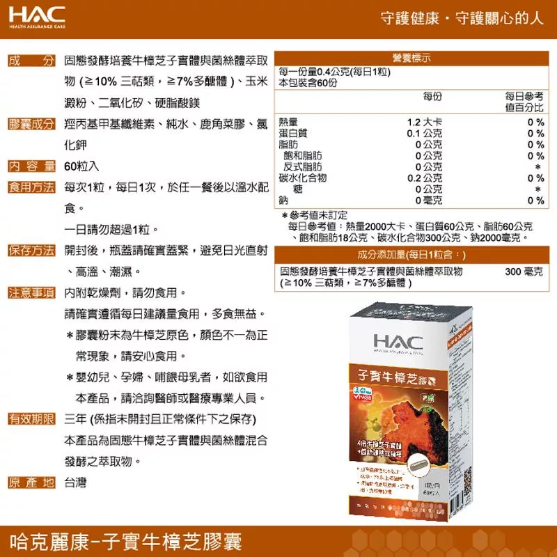 品名:永信HAC 高濃縮子實牛樟芝膠囊