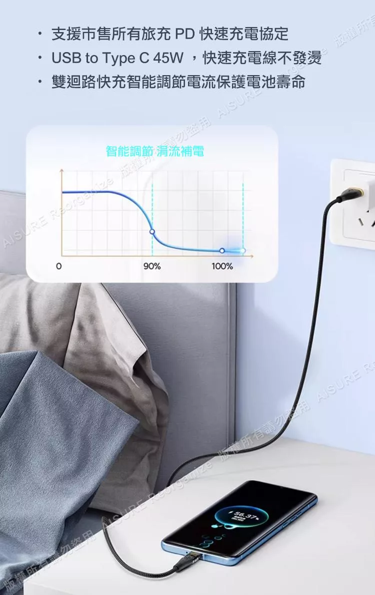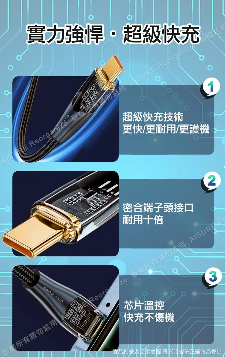 aibo 極速快充 PD100W 雙Type-C 傳輸充電線 1M