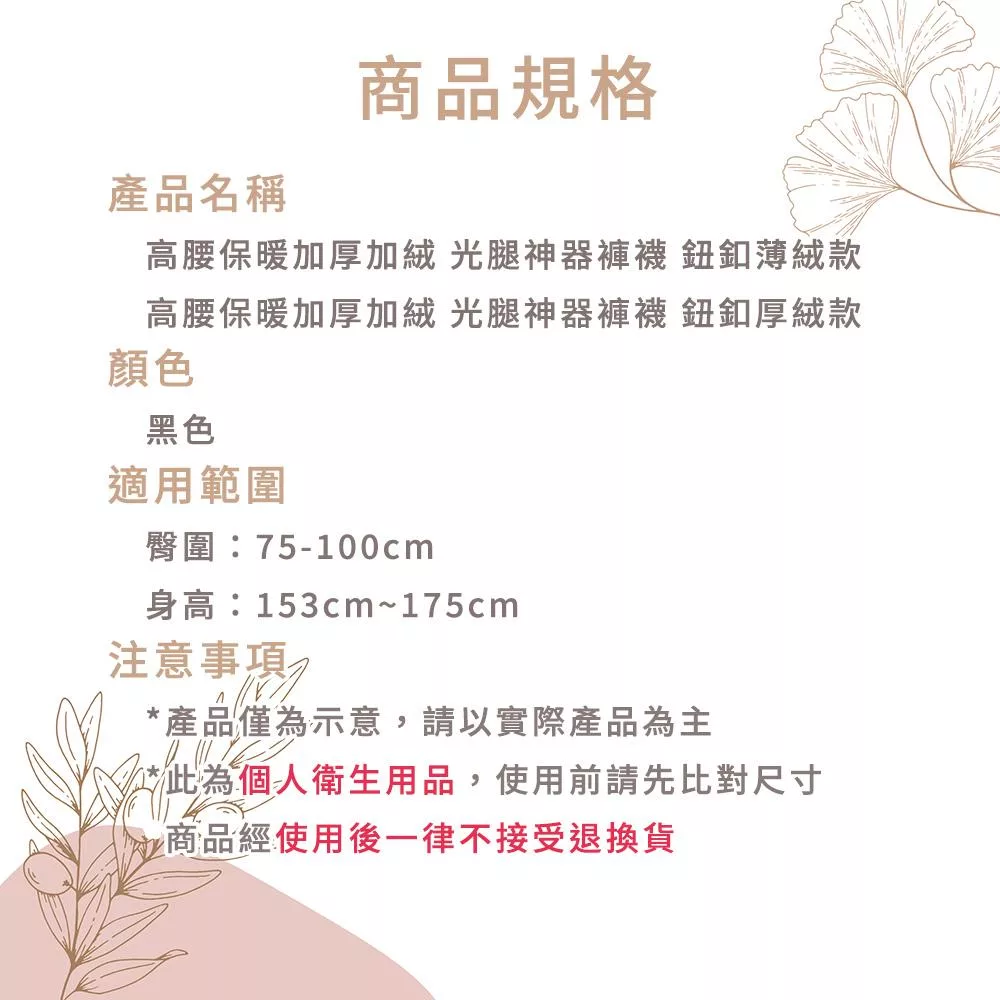 HERMOSA 高腰保暖加厚加絨 光腿神器褲襪 鈕釦薄絨款 黑
