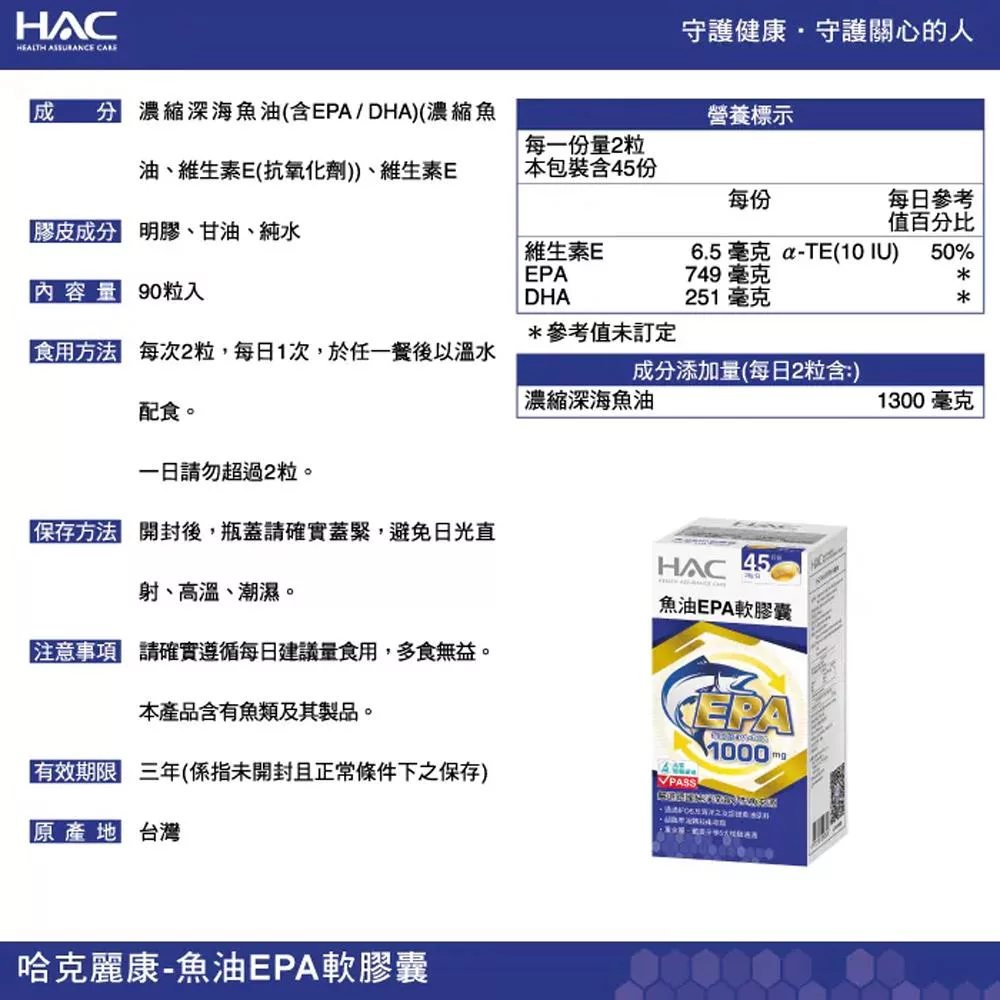 品名:永信HAC 魚油EPA軟膠囊