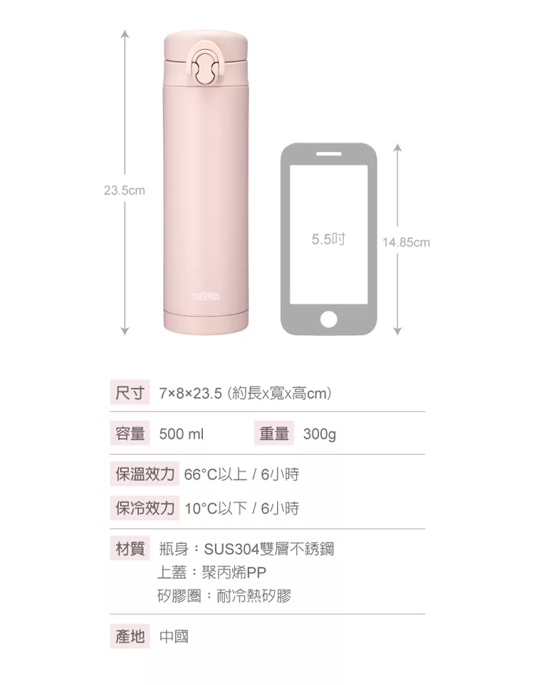 THERMOS膳魔師不鏽鋼彈蓋真空保溫瓶500ml(JNF-502)(OneTouch彈蓋設計)