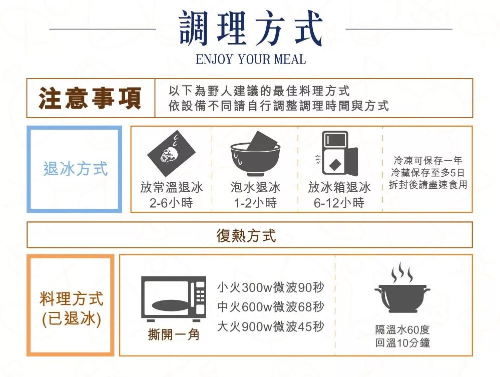 1.料理食品為短效期商品,皆為接獲訂單後製作,若須指定到貨請於住址欄後方備註希望收貨的日期,以免商品已排入製作或配送。經宅配送出後請勿任意更改訂單寄送資料,以利商品如期出貨。【轉廠商出貨商品,出貨日期: 可接受指定到貨日期,恕不接受指定配送時段】