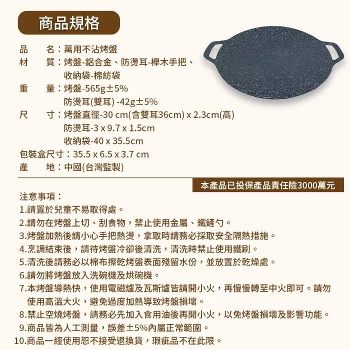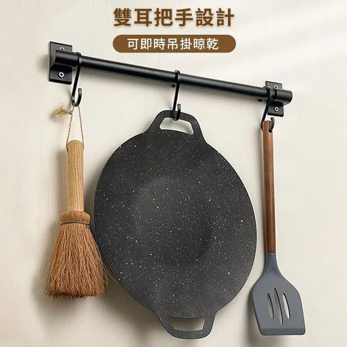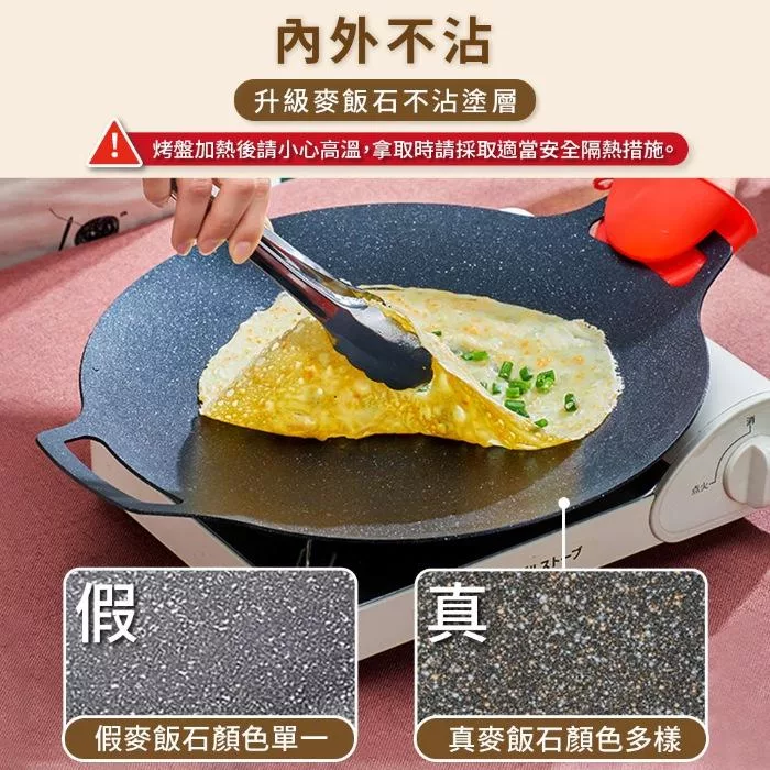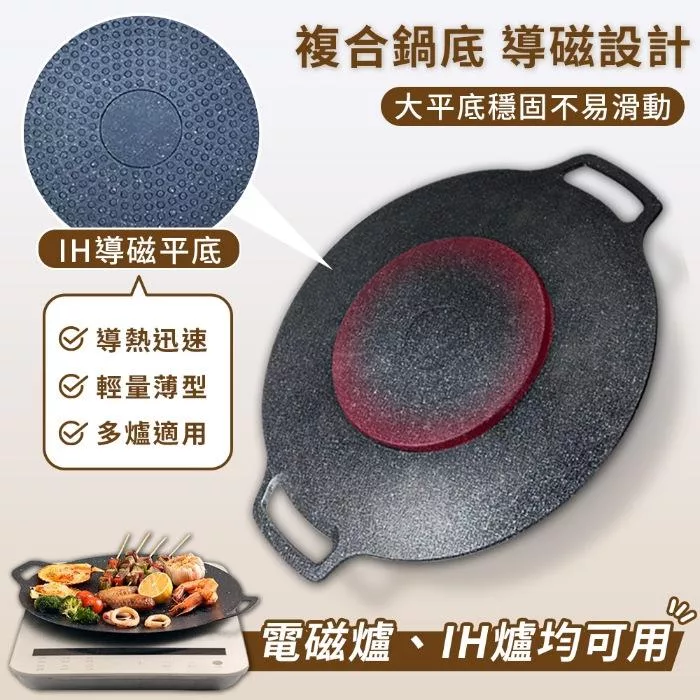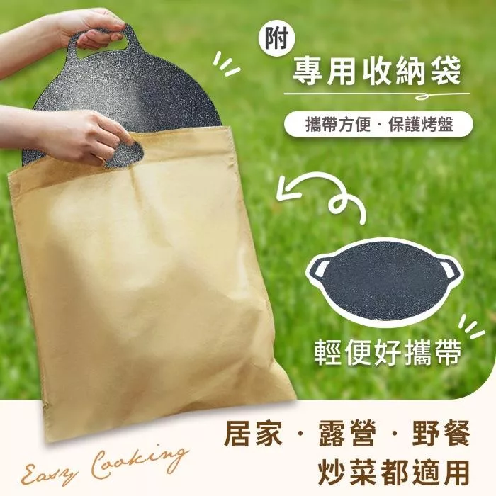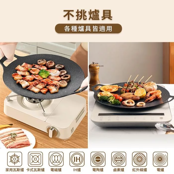 【Sushar小菜丫】戶外露營韓式烤盤 烤肉鍋 鐵板燒 不沾烤肉盤36cm(IH爐可用)(贈提袋+防燙把手)