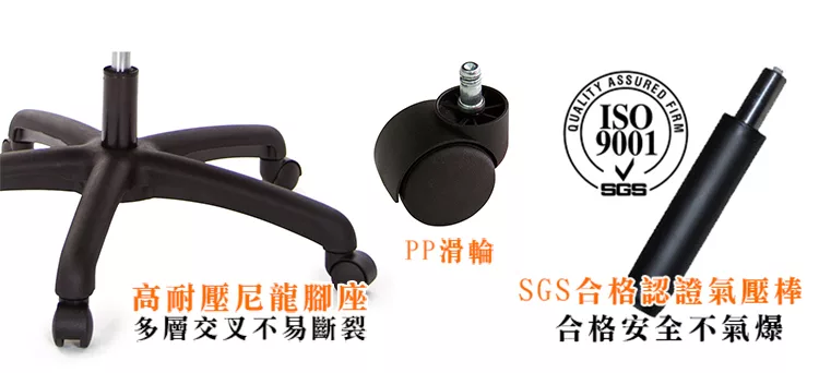 電腦椅透過『氣壓棒』來調整坐墊升降功能,調至個人最舒適座面高度,且台灣生產的氣壓棒,通過合格安全認證,品質良好、耐用,不會有氣爆、爆炸的問題。