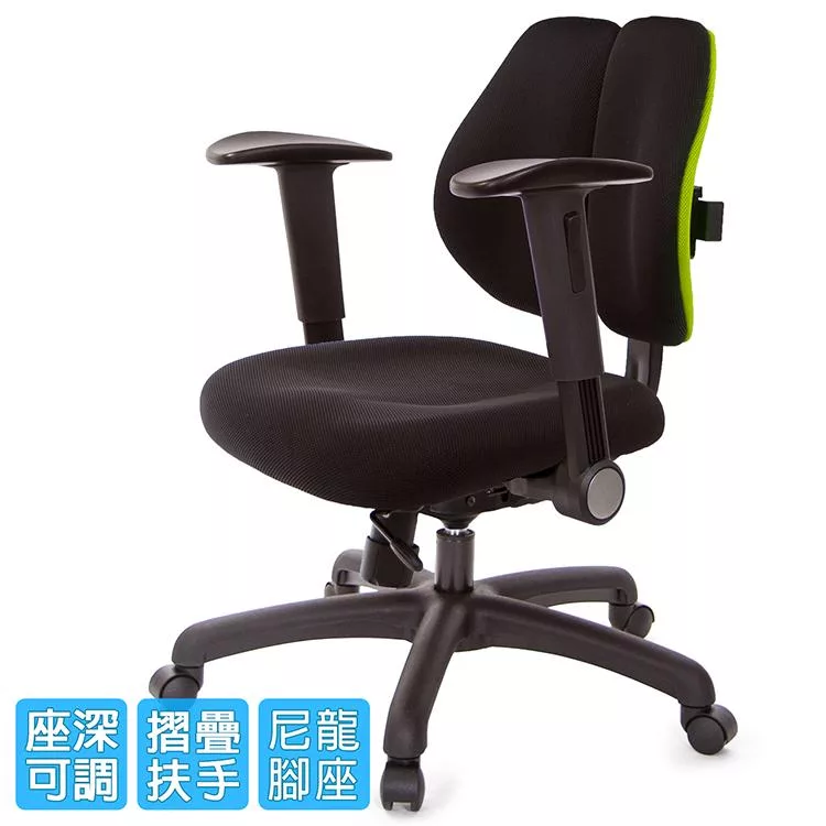 低背款 雙背工學椅 TW-2605E1 (黑面果綠色)示意圖