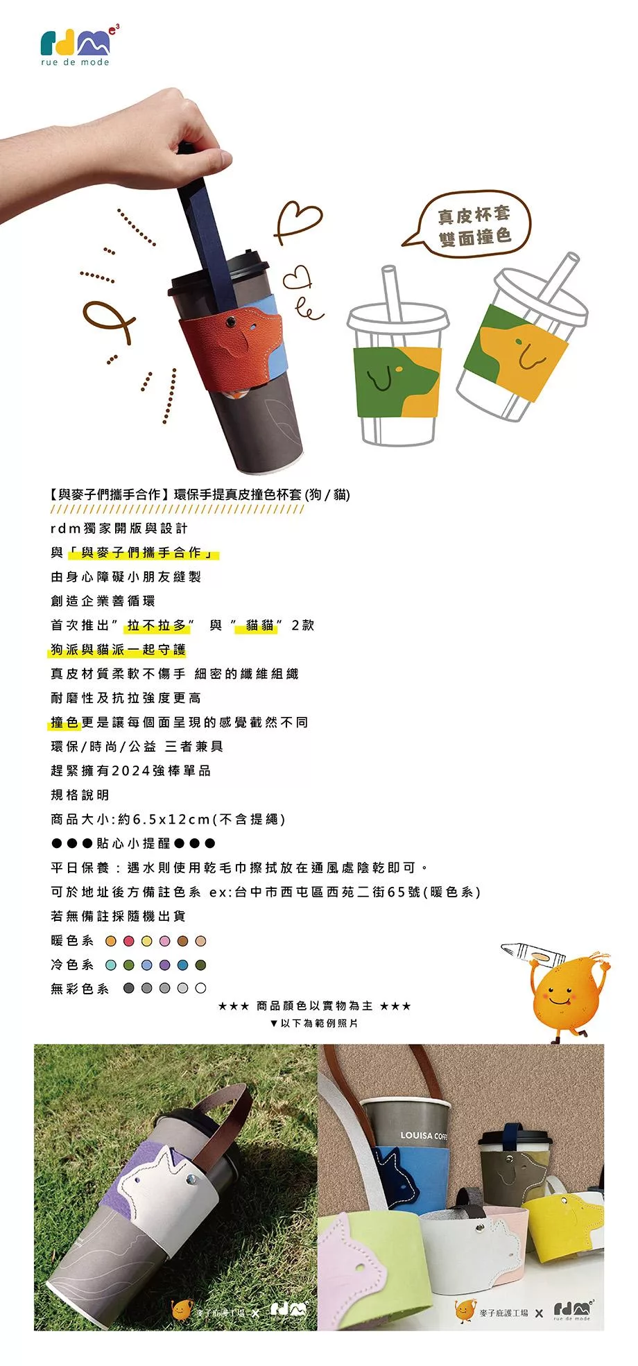 【rue de mode】"客製化公益合作" 環保真皮撞色飲料杯套 狗派3款樣式 法鬥
