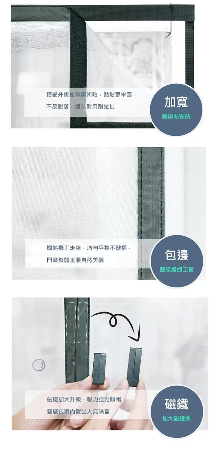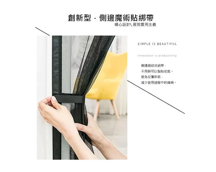 【EZlife】魔術貼超靜音磁性防蚊門簾黑色