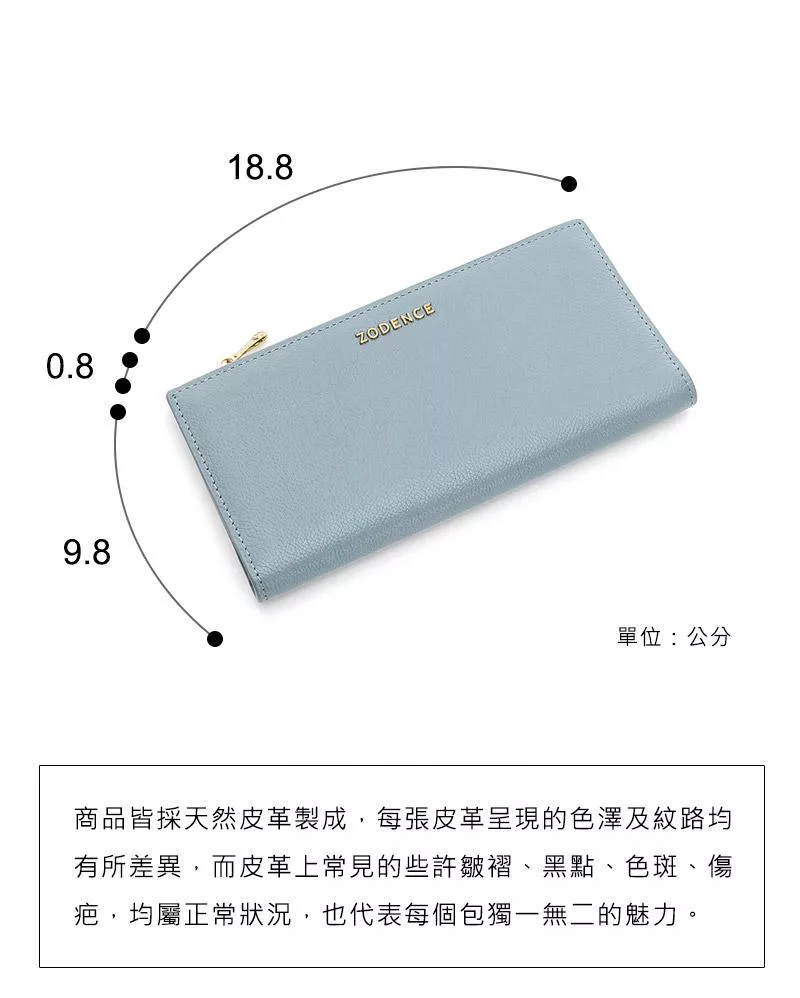 ZODENCE HAN義大利植鞣革時尚拉鍊長夾 深邃黑