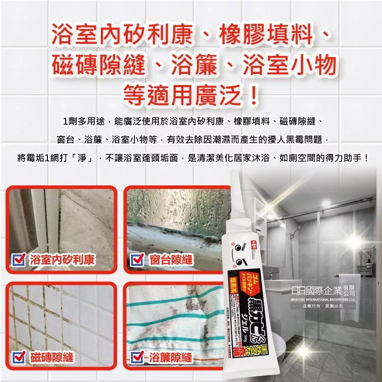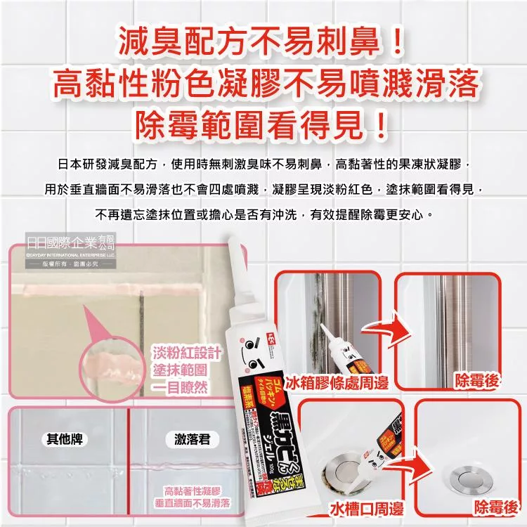 ●操作簡單3步驟,減臭配方無刺鼻,粉色凝膠不易滑落,居家霉斑剋星!