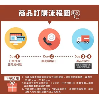 1.料理食品為短效期商品,皆為接獲訂單後製作,若須指定到貨請於住址欄後方備註希望收貨的日期,以免商品已排入製作或配送。經宅配送出後請勿任意更改訂單寄送資料,以利商品如期出貨。【轉廠商出貨商品,出貨日期: 可接受指定到貨日期,恕不接受指定配送時段】