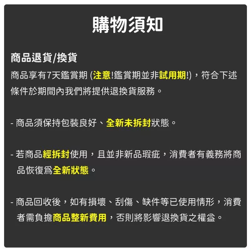 辦理退換貨時,商品必須是全新狀態與完整包裝(請注意保持商品本體、配件、贈品、保證書、原廠包裝及所有附隨文件或資料的完整性,切勿缺漏任何配件或損毀原廠外盒)。退回商品無法回復原狀者,恐將影響退貨權益或需負擔部分費用。
