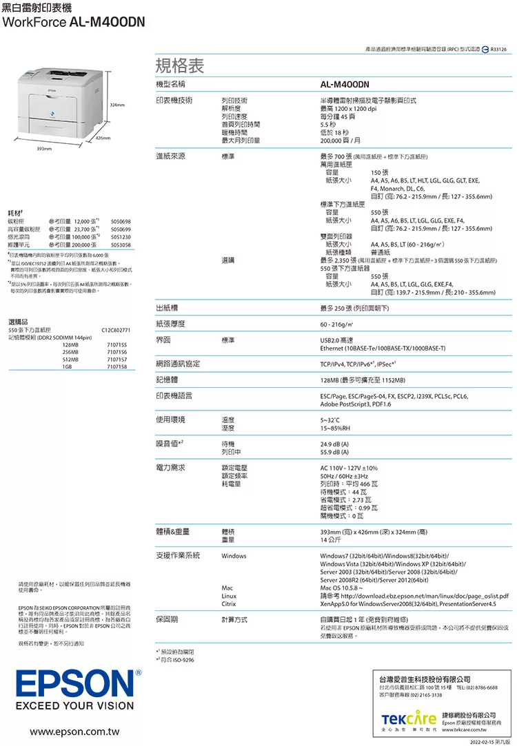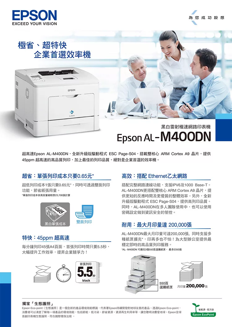 EPSON M2050 黑白高速雙網後方進紙 連續供墨印表機+T03Q100黑色高容量墨水2瓶