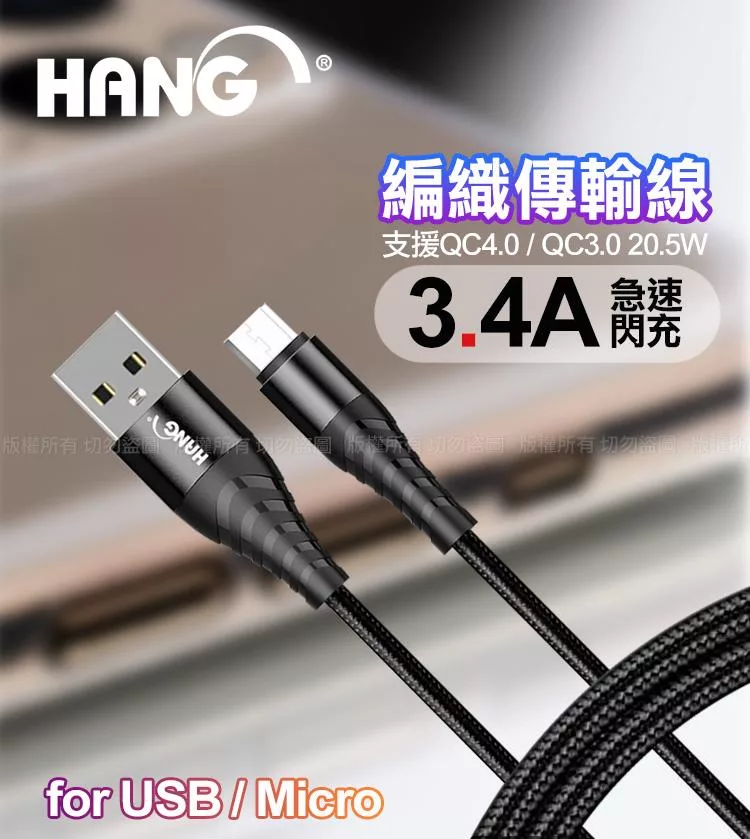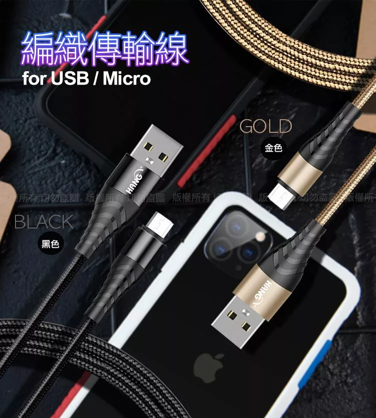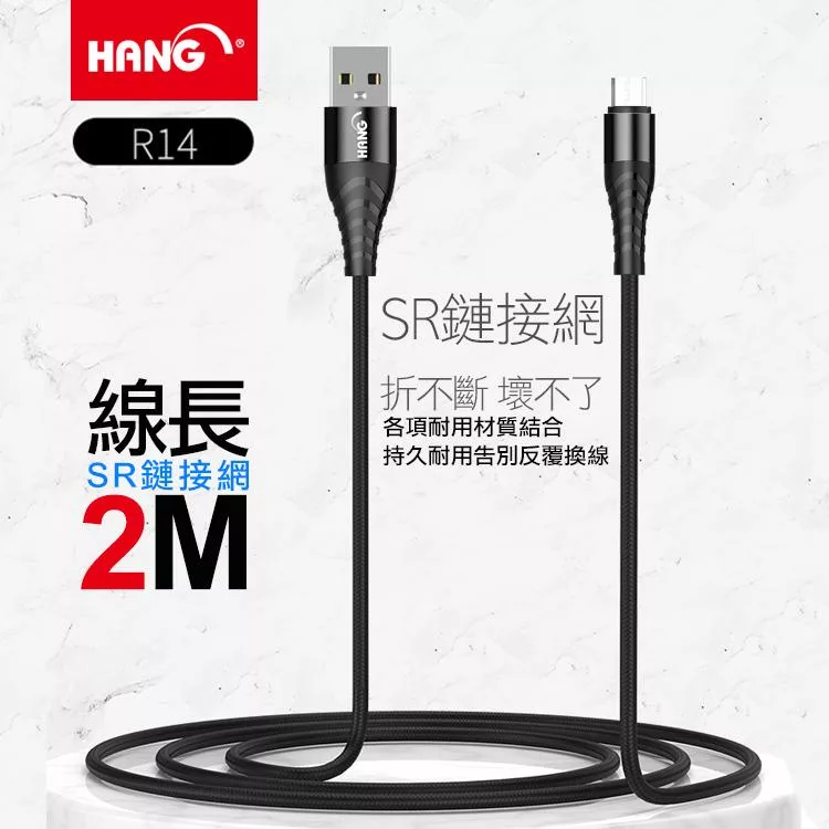 HANG for Micro USB 金屬編織充電傳輸線-200CM-2入